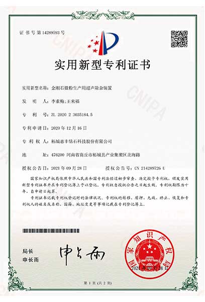 2021年,被河南省科技廳認定為河南省瞪羚企業。金剛石微納粉體河南省工程實驗室、河南省亞微米超硬材料粉體工程技術研究中心建設依托單位、設立了河南省微納米金剛石粉體材料院士工作站及河南省博士后研發基地。